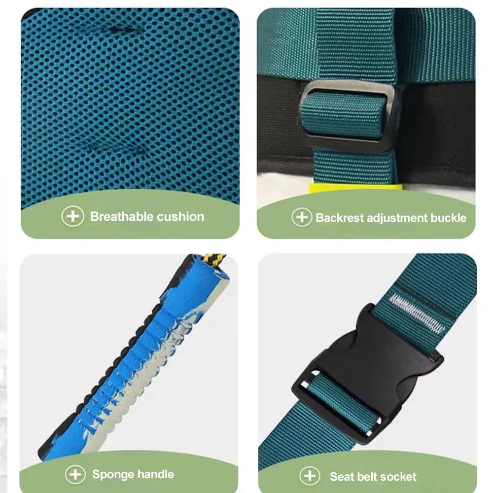 - Environmentally friendly PE material: safe and odorless, no edges or burrs, and will not harm the baby's skin. The seat cushion is made of cotton wool and filled with sponge, which is wear-resistant, comfortable and breathable. The polyester fiber rope has a load-bearing capacity of up to 3300lbs and has a sponge handle that will not hurt your hands.