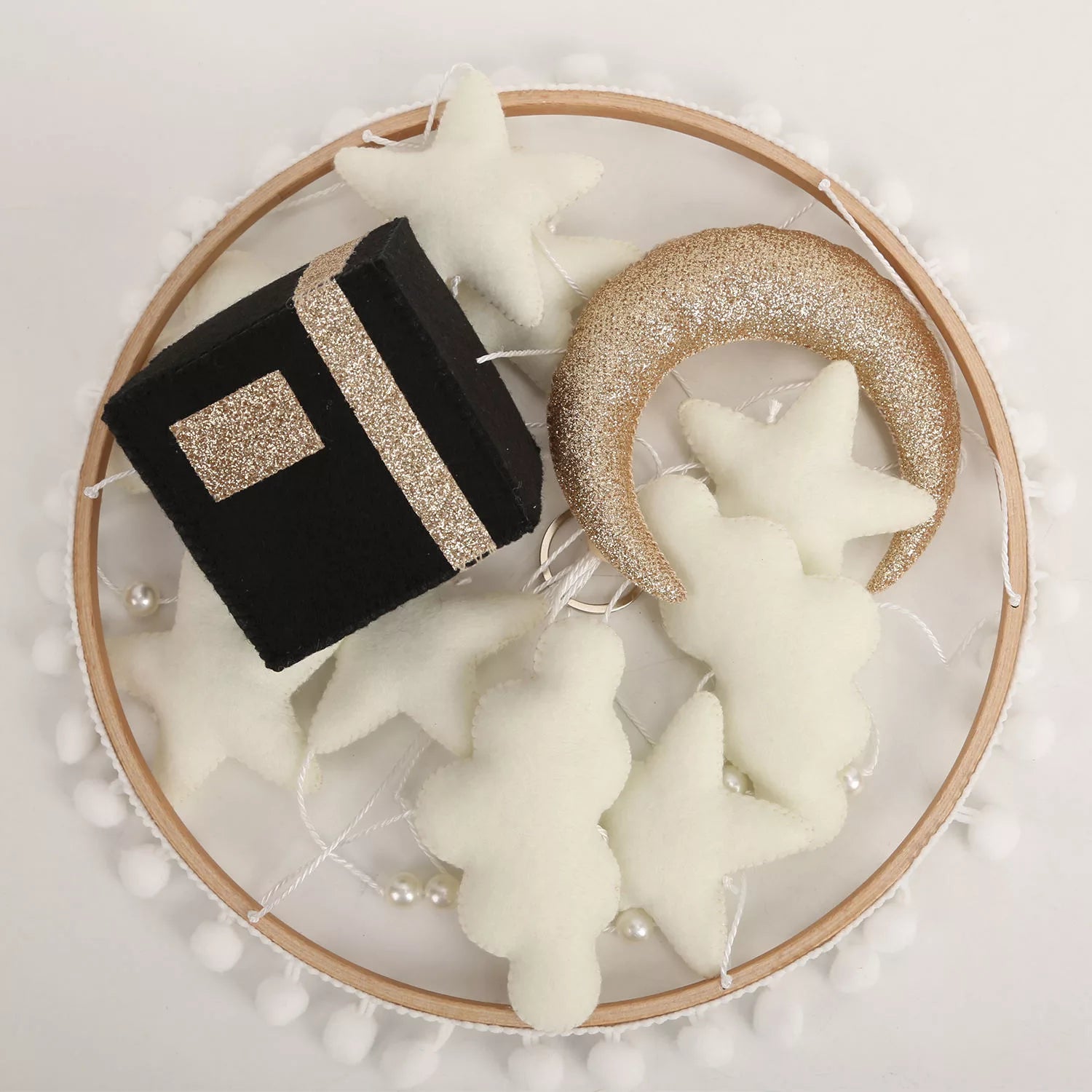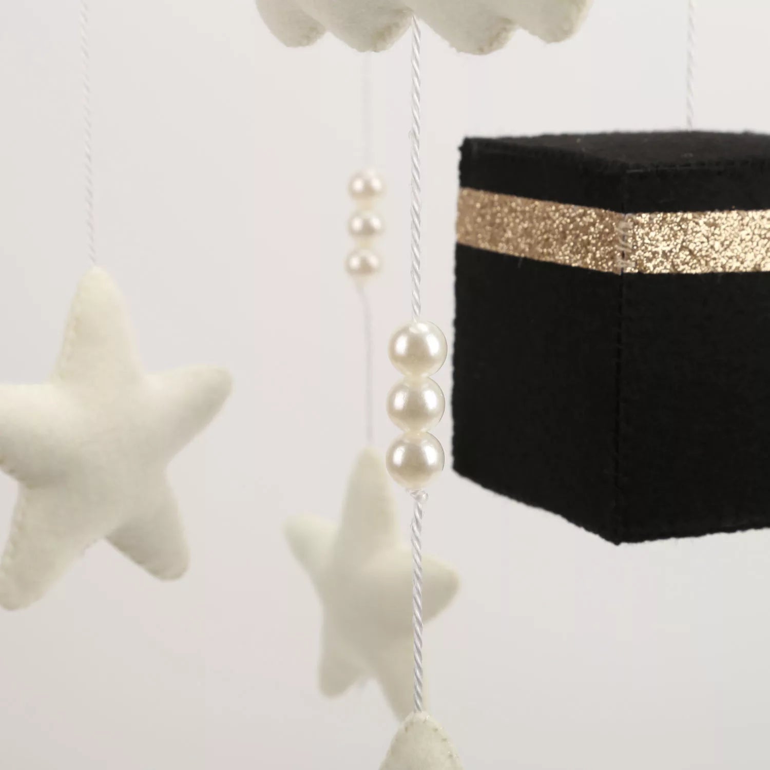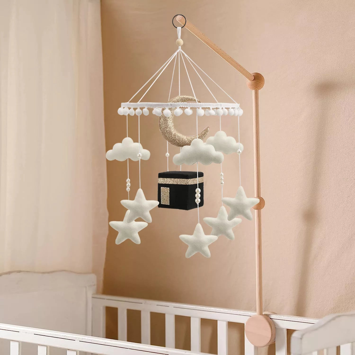 Introducing our charming Handmade Musical Mobile with a Kaaba centerpiece, perfect for your little one's nursery.